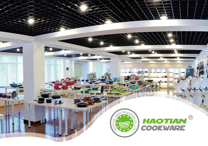 Zhejiang Wuyi Haotian Industry Trade Co.,Ltd.which specializes in manufacturing "Aluminum Non-stick Cookware".Our major products are pressed cookware and forged cookware,they are in various types, such as fry pan,saucepan,casserole,wok......ect.